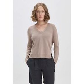 hessnatur Damen Strick Pullover Relaxed aus Bio-Baumwolle mit edlem Leinen - beige - Größe S