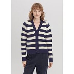 hessnatur Damen Strickjacke Streifen Relaxed aus Bio-Merinowolle mit Bio-Baumwolle - blau - Größe M