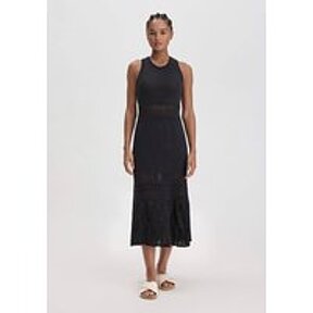 hessnatur Damen Ajour Strick Kleid Midi Fitted aus Bio-Baumwolle - schwarz - Größe 36