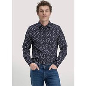 hessnatur Herren Print Hemd Regular aus Bio-Baumwolle - blau - Größe S (37/38)