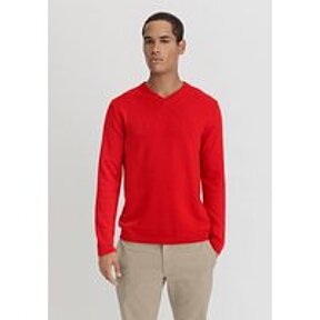 hessnatur Herren V-Pullover Regular aus Bio-Baumwolle mit Bio-Merinowolle - rot - Größe 46