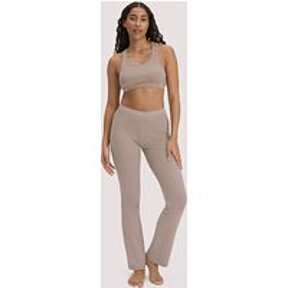 hessnatur Damen Leggings Flared SOFT RIB aus Bio-Baumwolle - beige - Größe 48