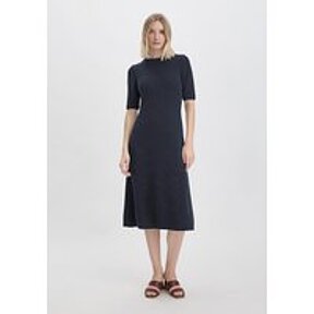 hessnatur Damen Strick Kleid Midi Slim aus Bio-Baumwolle - blau - Größe XS