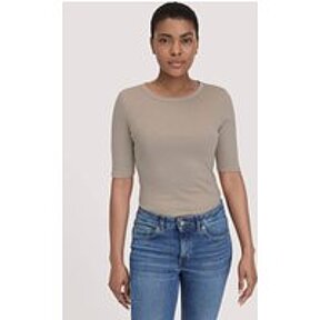 hessnatur Damen Softrib T-Shirt Fitted aus Bio-Baumwolle und TENCEL™ Modal - beige - Größe 34