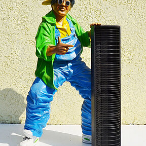 Deko Figur cooler Disco Junge mit Brille stehend CD-Ständer haltend H 113 cm Dekofigur aus Resin