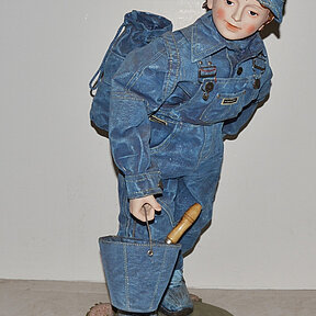 Deko Figur Junge in Jeans stehend mit Rucksack und Eimer H 74 cm Dekofigur aus Resin