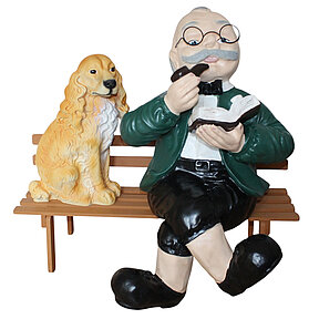 Dekofigur Opa mit Hund auf Bank Gartenfigur H 60 cm - wetterfeste Deko aus Kunstharz für den Garten
