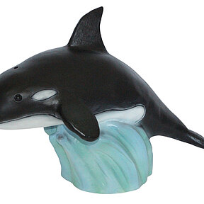 Gartenfigur Orca Deko Tierfigur aus Kunststoff auf einer Welle als Sockel Länge 41 cm