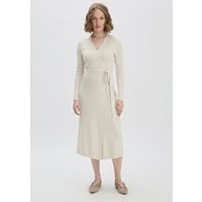 hessnatur Damen Rib Strick Kleid Midi Fitted aus Bio-Baumwolle - beige - Größe 34