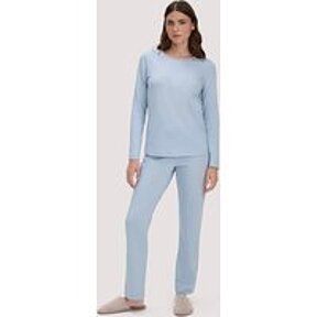 hessnatur Damen Schlafhose PURE COTTON aus Bio-Baumwolle - blau - Größe 42
