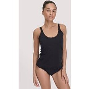 hessnatur Damen Tanktop COTTON FEEL LACE aus Bio-Baumwolle - schwarz - Größe 46
