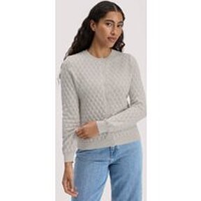 hessnatur Damen Strick Jacke Regular aus Bio-Baumwolle mit Merinowolle - beige - Größe M