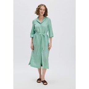 hessnatur Damen Kleid Midi Relaxed aus TENCEL Lyocell mit Leinen - grün - Größe 46