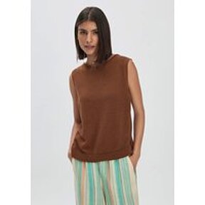hessnatur Damen Strick Top Regular aus Leinen mit reiner Bio-Baumwolle - braun - Größe S
