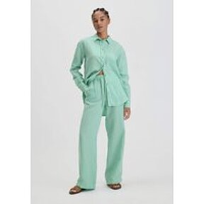 hessnatur Damen Hose Straight Leg Relaxed aus TENCEL™ Lyocell mit Leinen - grün - Größe 36