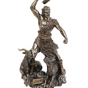 Dekofigur Thor Höhe 30 cm Skulptur Nordischer Donnergott mit Hammer & Ziegen detailreiche Statue