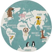 Kinderzimmerteppich mit Weltkarte Einmal um die ganze Welt und dabei die Kontinente entdecken - unser Kinderteppich macht's möglich. Ein Flor Kinderteppich zum Spielen, das finden alle Kinder großartig. Liebevoll und kindgerecht designt. Der Teppich wurde aus 100% Bio-Baumwolle (kbA) in Handarbeit gefertigt. Stundenlanges Spielenstellt auf dem "HANS NATUR" Teppich keinerlei Problem dar, denn der Spielteppich ist mit ca. 46500 Knoten/m² und einem Gewicht von 3200 g/m² wunderbar weich und flauschig.Streng schadstoffgeprüfter Teppich für das Baby- oder Kinderzimmer.Trägermaterial mit Naturkautschuk latexiert, geeignet für Fußbodenheizung.Rückseite 100% Bio-Baumwolle (kbA). GOTS-zertifiziert, also umweltfreundlich und sozial fair hergestellt. Flor Kinderteppich aus 100% Bio-Baumwolle (kbA), Rückseite 100% Bio-Baumwolle (kbA) Durchmesser 114 cm Höhe 1,5 cm,Florhöhe ca. 1 cm, Gewicht ca.3200 g/m², Tuft ca. 46500Knoten/m² GOTS-zertifiziert Ansprechende Kinderzimmer Deko und weiche Spielunterlage Hochwertig, in Handarbeit gefertigt, streng schadstoffgeprüft Hinweis Unsere Teppiche werden nach strengen Richtlinien für Naturtextilien in Indien hergestellt und in unserem Auftrag von einem unabhängigen, deutschen Institut auf Schadstoffe geprüft. Unser enger, persönlicher Kontakt zu der Manufaktur direkt vor Ort garantiert die Beobachtung sozialer Aspekte der Mitarbeiter. Pfleghinweise Unsere HANS NATUR Teppiche sind herrlich weich, hochwertig verarbeitet und ein wahrer Eyecatcher für das heimische Kinderzimmer. Damit du lange Freude an dem Kinderteppich hast, möchten wir dir einige Pflegehinweise ans Herz legen. Sauge deinen Teppich regelmäßig. Zu Beginn ist es möglich, dass sich überschüssige Fasern lösen. Dies ist kein Qualitätsmangel, sondern ein natürlicher Vorgang. Ein Bürsten des Teppichs oder das Herauszupfen der Fasern ist nicht nötig. Flecken nimmst du mit einem trockenen, sauberen Tuch auf. Danach tupfst du mit einem leicht feuchten Tuch nach. Ist auf dem Kinderzimmerteppich ein hartnäckiger Fleck entstanden, kannst du einen geeigneten Fleckentferner (ohne Bleiche) benutzen. Probiere diesen aber vorerst an einer unauffälligen Stelle aus.Bitte verwende keine chemischen Mittel zur Reinigung des Bio Teppichs und benutze keinen Trockner. Zum Reinigen des Teppichs wende dich an eine Reinigung, die auf das Reinigen von nicht chemisch ausgerüsteten Naturfasern spezialisiert ist.