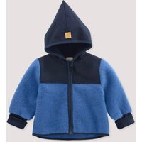 Rein und naturverbunden. Robuste, wärmende Fleecejacke für kleine Entdecker – gefertigt aus Bio-Merinowolle von frei lebenden Schafen in Südamerika. Schulterpartie und Kapuze ausgestattet mit ökologischem Softshell, das erste Regentropfen abperlen lässt. Praktisch: die Mitwachsbündchen an den Ärmeln.