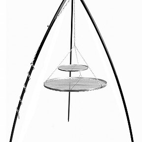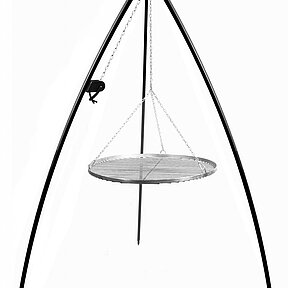 Campinggrill am Dreibein H 160 cm mit Grillrost Ø 50 cm aus Edelstahl Camping Tripod Grillständer