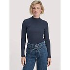 hessnatur Damen Rib Longsleeve Slim aus Bio-Baumwolle - blau - Größe 36