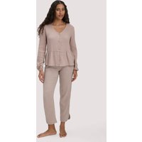 hessnatur Damen Musselin Schlafhose Regular PURE COMFORT aus Bio-Baumwolle - beige - Größe 36