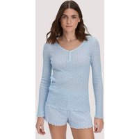 hessnatur Damen Pointelle Henley Schlafshirt PURE COTTON aus Bio-Baumwolle - blau - Größe 48