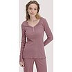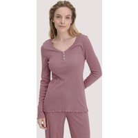 hessnatur Damen Pointelle Henley Schlafshirt PURE COTTON aus Bio-Baumwolle - lila - Größe 48