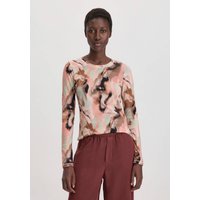 hessnatur Damen Print Premium Light Jersey Longsleeve Slim aus Bio-Baumwolle - braun - Größe 46