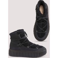 Kuschelgarantie. Diese Schnürboots aus samtigem Nubukleder kombinieren soften Teddyplüsch aus reiner Schurwolle chunky Plateausohle und extralangen Schnürsenkeln – für maximalen Komfort und einen lässigen Streetstyle. Warm, bequem und konsequent nachhaltig.