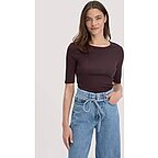 hessnatur Damen Softrib T-Shirt Fitted aus Bio-Baumwolle und TENCEL™ Modal - braun - Größe 34