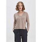 hessnatur Damen Strick Pullover Relaxed aus Bio-Baumwolle mit edlem Leinen - beige - Größe XS