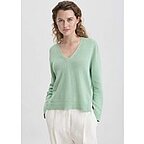 hessnatur Damen Strick Pullover Relaxed aus Bio-Baumwolle mit edlem Leinen - grün - Größe L