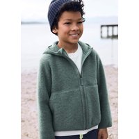 hessnatur Kinder Wollfleece Jacke aus Bio-Merinowolle - grün - Größe 122/128