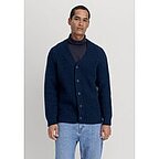 hessnatur Herren Strickjacke Regular aus Merinowolle - blau - Größe 56