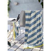 Blickfang, Überwurf oder Wärmespender in der Übergangszeit: die Strickdecke mit Blockstreifen und markanten Kanten setzt Zeichen.