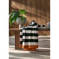 Blickfang, Überwurf oder Wärmespender in der Übergangszeit: die Strickdecke mit Blockstreifen und markanten Kanten setzt Zeichen.