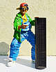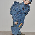 Dekofigur coller Diso Junge in Jeans Latzhose mit Brille stehend und haltend mit einer Hand CD-Ständer , Deko Figur Blickfang für Tanz-Musiklokale oder für Musikfans. Maße ca.: Höhe 113 cm x Breite 59 cm x Tiefe 42 cm. Material:  ,Vollständig aus Resin gefertigt für Langlebigkeit, farbenfroh handbemalt Perfekt für die Gestaltung von Sporteinrichtungen, Musik-Clubs oder als ausgefallener Eyecatcher in jedem Raum!  ,