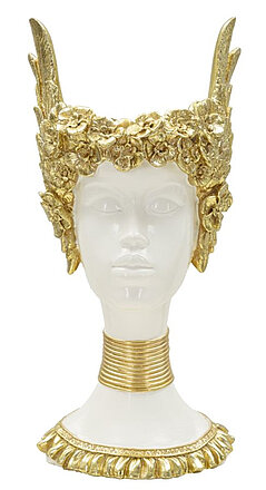 Produkt: Deko Skulptur klassische Büste griechische Göttin der Weisheit Athene in Weiß mit goldenen Elementen klassische Dekofigur Statue in antikem Stil mit offenem Kopf als Vase für trockene Dekoelemente oder Behälter nutzbar. Gefertigt aus hochwertigem Polyresin, bietet die Skulptur nicht nur ein edles Erscheinungsbild, sondern auch eine langlebige, detailreiche und robuste Verarbeitung. Die Statue ist frostsicher, sollte jedoch nicht starkem Regem und Sonneneinstrahlung ausgesetzt werden.In der griechischen Mythologie ist Athene die Göttin der Weisheit, der Strategie, der Künste, des Handwerks und der Kriegskunst. Maße ca.:  ,Höhe 32 cm x Breite 15 cm x Tiefe 14,5 cm. Gewicht ca.:  ,0,72 kg. Material:  ,aus Polyresin: langlebig, robust, leicht. Ideale, anspruchsvolle, edle Dekoration für Innen- und geschützte Außenbereiche mit einem Nutzungselement für kleine und trockene Gegenstände. Die Produkte ,werden in einem traditionsreichen Unternehmen in handwerklicher detailgetreuer Arbeit hergestellt.