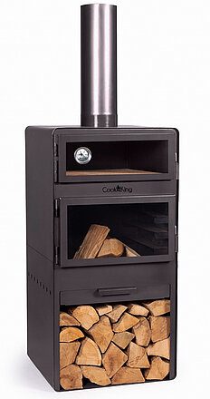 Produkt: , Gartenkamin " Vento " Pizza-Gartenofen mit doppelt gehärtetem Glas in der Backfachtür zum Grillen Backen und Heizen mit Backfach und Kaminholzablage Terrassenofen aus Naturstahl Kamin Ofen. Im Ofen befinden sich 3 Ebenen für Roste und Pfannen.  , Maße ca.:  ,Höhe 150 cm x Breite 50 cm x Tiefe 43 cm x Rohrlänge 50 cm x Größe der Kaminöffnung 45x25 cm x Größe der Backöffnung 45x16 cm x Dicke der Stahlstangen 1,5 mm x Gewicht 54 kg. Lieferumgang: Gartenofen ohne Zubehör. Material: , hochwertiger Naturstahl. Massiv gefertigt und langlebig. , Hinweis: , Falls Sie das rostige Aussehen von Naturstahl nicht mögen, bitte schützen Sie das Produkt vor Wasser und Feuchtigkeit. Der Rost beeinträchtigt nicht die Funktionsqualität. Hierfür eignet sich eine passende wasserfeste Abdeckung. HANDGEFERTIGTES PRODUKT, HERGESTELLT IN EUROPA Der Gartenofen VENTO macht das abendliche Plaudern im Garten noch angenehmer. Dank seiner soliden Konstruktion aus dickem Blech erreicht der Gartenkamin schnell hohe Temperaturen und gibt gleichzeitig Wärme an die Umgebung ab. So kann man sich gemütlich vor dem Kamin aufwärmen. Die ganze Konstruktion ist sehr stabil und fest. Alle Komponenten wurden zusammengeschweißt, um ein unglaublich robustes Produkt zu schaffen. Die zu öffnende Gittertür verhindert das Entweichen von Funken aus dem Inneren und lässt uns den Blick auf die Flammen genießen. In der oberen Kammer des Gartenofens befindet sich ein Backofen zum Braten von Speisen.  ,Doppelt gehärtetes Glas in der Backofentür erleichtert die Kontrolle des Garguts und ein eingebautes Thermometer ermöglicht die Überwachung der Gartemperatur. Der Backofen ist innen mit Schamottesteinen ausgekleidet, so dass man nicht nur Brot oder Pizza, sondern auch viele andere Gerichte wie Fisch, Braten, Kuchen oder Gemüse backen kann. Im Holzbackofen gebackene Speisen sind vom Geruch des brennenden Holzes erfüllt. Dieser bereichert den Geschmack und das Aroma der zubereiteten Gerichte. Dies ist die natürlichste und gesündeste Art und Weise, Mahlzeiten zuzubereiten. Der Gartenofen ist mit einem Schornstein ausgestattet, durch den der Rauch beim Brennen abgeleitet wird. Er verfügt über eine Ablage, auf der viel Holz aufbewahrt werden kann. Außerdem schützt die untere Ablage den Boden vor hoher Temperatur. Das Innere des Ofens verfügt über drei Ebenen für Grillroste oder Grillpfannen, so dass die Temperatur des Garguts viel besser kontrolliert werden kann. Die hoch gelegene Abgasöffnung des Schornsteins verhindert das Einatmen des Rauchs durch Personen in der Umgebung. Ein weiterer Vorteil des Gartenofens ist der herausnehmbare Aschekasten, der die Reinigung der Feuerstelle von Asche und unverbrannten Holzresten erleichtert.