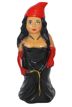 Moderne Gartenzwerge Lustige Gartenzwergin Dekofigur Domina Zwergenfrau im schwarzen Kleid. Maße ca.:  ,Höhe 30 cm x Breite 13 cm x Tiefe 13 cm. Material:  ,hochwertiger PVC-Kunststoff, bruchsicher, wetterfest, lichtecht und farbecht. Die Farben sind lösungsmittelfrei, enthalten keinerlei giftige Substanzen und erfüllen die DIN EN 71-3. Tradition &, Qualität aus Deutschland: , Jede Figur wird seit 1958 in einem familiengeführten Traditionsunternehmen in Deutschland im Schleuderverfahren in handwerklicher Arbeit hergestellt.