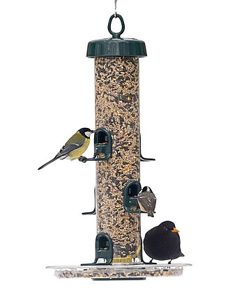 Produkt: , Naturschutzprodukt Futtersäule " Big Easy " Futterstation mit Futterteller dadurch nagerfrei mit 6 Ansitzstellen. Der Futterteller ist speziell für die Futtersäule Big Easy geeignet. Der praktische Futterteller fängt herabfallende Körner auf und sorgt für eine saubere Futterstelle. Er reduziert Futterverschwendung, hält den Boden sauber und bietet zusätzlichen Sitzplatz für verschiedene Vogelarten. Außerdem verhindert er, dass beispielsweise Ratten angelockt werden. Lieferumfang:  ,Futtersäule mit 6 Futterentnahmestellen (ohne Futter) und Futterteller. Außenmaße: Höhe 50 cm x Durchmesser 8 cm, Gewicht 0,7 kg. , Inhalt:  ,2,2 l. Material:  ,rostfreie Metallteile mit UV-stabiler Polycarbonatröhre. Futterteller besteht aus transparentem Kunststoff. Futter: Sonnenblumenkerne und Futtermischungen für Säulen. , Kernerfresser: Kohl-, Blau-, Sumpf-, Tannen- und Haubenmeise, Kleiber, Buch-, Grün- und Bergfink, Dompfaff, Erlenzeisig. Anwendung: schnelle Reinigung, alle Einzelteile lassen sich ohne Werkzeug auseinandernehmen, dauerhafte Hygiene mit minimalstem Aufwand. Der Futterteller sollte auch von Zeit zu Zeit mit heißem Wasser gesäubert werden.