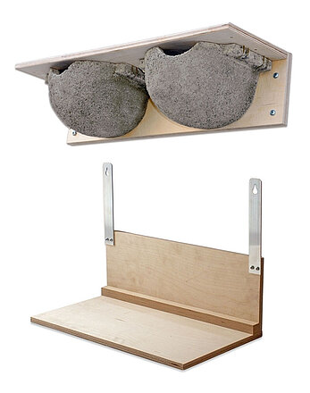 Produkt: Mehlschwalben Doppelnest Typ Nr. 9B mit passendem Kotbrett als Satz zum Aufhängen Nisthilfe unter Dachvorsprüngen praxiserprobter Vogelschutz. Sehr gutes Produkt für Kolonie-Bildung von Mehlschalben. Es besteht aus zwei Brutnäpfen aus atmungsaktivem SCHWEGLER-Holzbeton, montiert auf einem robusten Winkelbrett aus wetterfestem Multiplex-Holz. Dank der stabilen Metallklammer-Halterung lassen sich die Brutnäpfe einfach herausnehmen und wieder einsetzen – ideal für Reinigung und Kontrolle mit passendem Kotbrett für optimale Hygiene am Gebäude. Bewohner: Mehlschwalben bevorzugen Nistplätze an hellen Fassaden oder Holzverschalungen. Da sie sehr brutorttreu sind, dauert die Ansiedlung an neuen Orten meist etwas länger. Hat sich jedoch ein Brutplatz etabliert, lässt sich mit unseren Doppelnestern eine große Kolonie aufbauen. ,  ,Die Holzteile (Winkelbrett und optionales Kotbrett) liefern wir unbehandelt. Eine Behandlung mit Lasur oder wetterfester Fassadenfarbe wird empfohlen, um Verfärbungen durch Witterung zu vermeiden – ist aber nicht zwingend erforderlich. , Die Nestschalen selbst dürfen nicht behandelt werden , da ihre Atmungsaktivität entscheidend für den Bruterfolg ist. Maße:  ,Mehlschwalbennest - Höhe 11 cm x Breite 46 cm x Tiefe 15,5 cm. , Gewicht: ca. 3,2 kg. Maße: Kotbrett - Höhe 17 cm x Breite 46 cm x Tiefe 24 cm Gewicht: 3,2 kg. , Maße: Mehlschwalbennest mit Kotbrett - Höhe 44 cm x Breite 46 cm x Tiefe 24 cm. , Grundfarbe: grau. Material: Holzbeton. Es ist ein Naturprodukt, besteht aus ca. 75 % Holz und klimaausgleichenden Zuschlägen, z.B. Ton, Lehm, etc. Eigenschaften: langlebig, witterungsbeständig, spechtsicher, atmungsaktiv, praxiserprobt. Aufhängung:  ,Das Doppelnest mit Kotbrett sollten an der Außenwand von Gebäuden unter Dachvorsprüngen angebracht werden, idealerweise auf der wettergeschützen Seite. Mehlschwalben nisten ausschließlich außen am Gebäude, nicht im Inneren. Aufhängehöhe: mindestens 2 Meter Reinigung: Jahrelang ohne zwingende Reinigung benutzbar. Es empfiehlt sich aber die Nester und Kotbrett wenn möglich trotzdem öfters zu kontrollieren und gegebenfalls zu reinigen. Produzent: Firma Schwegler ist seit über 76 Jahren eine vertraute Marke für Vogelschutzgeräte und Naturschutzprodukte. Der große Erfolg und höchste Belegungsquoten sind wissenschaftlich belegt. Unzählige Empfehlungen von internationalen führenden Naturverbänden, staatlichen Einrichtungen, gemeinnützigen Organisationen untermauern die Qualität der Produkte.