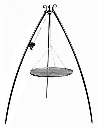 Produkt: Schwenkgrill Dreibein mit Grillrost und Kurbel zum verstellen des Grillrostes Grill Tripod Grillständer Maße ca.: , Höhe 200 cm x Durchmesser des Grillrosts 50 cm ,x Dicke der Roststangen 5 mm. , Gewicht ca.:  ,12 kg. Material:  ,Dreibein und Grillrost aus hochwertigem Naturstahl. Das Dreibein ist pulverbeschichtet. Hinweis: Falls Sie das rostige Aussehen von Naturstahl nicht mögen, bitte schützen Sie den Grillrost vor Wasser und Feuchtigkeit. Der Rost beeinträchtigt nicht die Funktionsqualität. HANDGEFERTIGTES PRODUKT, HERGESTELLT IN EUROPA In der Mitte faltbares Dreibein:  ,Die Beine des Dreibein sind in je 2 Einzelteile unterteilt und lassen sich zusammenstecken. ,Dank den in der Mitte faltbaren Beinen hat das Produkt einen zusätzlichen Vorteil: Das Dreibein lässt sich schnell und einfach montieren, demontieren, transportieren und aufbewahren. , Der Schwenkgrill ist perfekt für Treffen mit Bekannten im Garten. Bei diesem Grill kann sowohl ein gewöhnliches Feuer als auch traditionelles Kohlenbrikett als Wärmequelle verwendet werden. Das Dreibein ist pulverbeschichtet, was seine Wetterbeständigkeit erhöht. Der massive, aus dicken Materialien ausgefertigte Rost kann eine große Menge Essen halten. Das stabile Dreibein lässt sich auch auf unebenen Fläche aufstellen. Die effektvollen Verzierungen mit geschmiedeten Elementen an der Spitze runden das Dreibein ab. Einfache Regulierung des Rostes ermöglicht eine schnelle Änderung dessen Höhe.