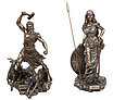 Produkt: Statuen Set 2 Figuren - Freya &, Thor stehend nordische Götter aus germanischer, nordischer Mythologie , in edler Bronze-Optik. Verleihen Sie Ihrem Zuhause einen Hauch nordischer Sagenwelten mit diesen detailreichen Dekofiguren aus der renommierten Parastone Mythologie-Kollektion. Die Freya Statue zeigt die mächtige nordische Göttin der Liebe, Schönheit, Fruchtbarkeit und Magie, auch bekannt als Frea oder Freyja. Mit Speer, Schild und Schwert dargestellt, verkörpert sie zugleich Anmut und Stärke. Die Thor Statue  ,zeigt den mächtigen Gott des Donners in kraftvoller Pose mit erhobenem Hammer, begleitet von seinen legendären Ziegen. Thor ist der nordischer Gott des Donners, Sturms und der Furchtbarkeit Freya Maße ca.:  ,Höhe 33 cm (mit Speer) x Höhe 30 cm x Breite 15 cm x Tiefe 15 cm. Thor Maße ca.:  ,Höhe 30 cm x Breite 17 cm x Tiefe 14 cm. Material:  ,aus hochwertigem Stein- und Marmorpulver, das mittels Kunstharz gebunden wird. Dieses Verfahren stellt sicher, dass die Figuren eine solide und dauerhafte Qualität haben. Produkt: Parastone steht für hochwertige Produkte. Mit fast 60 Jahren Erfahrung entwirft und stellt das Familienunternehmen dekorative Skulpturen her. Einige Figuren des Herstellers sind in berühmten Museen wie dem J. Paul Getty Museum und dem Philadelphia Museum of Art zu sehen.