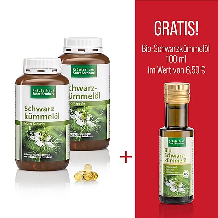 Schwarzkümmelöl aus dem Kräuterhaus Sanct Bernhard. Bestellen Sie 1 Stift und Sie erhalten 1 Stift gratis dazu!