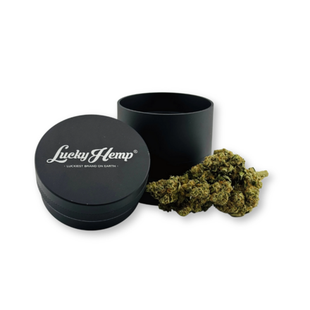 Toothless Grinder in matt-schwarz – zahnloser, fluffiger Blüten-Grind, robustes Aluminium & starker Magnet – perfekt für CBD/THC-Blüten.