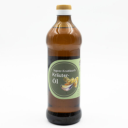 Kräuteröl Knoblauch Ingwer ist eine Spezialität der Ölmühle Garting. Als Basis verwenden wir unser naturbelassenes, kaltgepresstes Rapsöl. In dieses native Speiseöl legen wir für mindestens drei Wochen Knoblauch und Ingwer ein. Ergebnis ist ein wunderbares Würzöl zum Kochen, Dünsten, Braten und für Salatdressings. Kaufen Sie dieses Produkt zur Bereicherung Ihrer Küche oder auch als Geschenk.inkl. MwSt. zzgl. VersandkostenLieferzeit: 2-4 Werktage