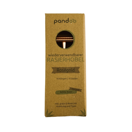 Nachhaltig glatt – der plastikfreie Rasierhobel von pandooFür eine umweltfreundliche Rasur – langlebig, stilvoll und hautschonendMach Schluss mit Einwegrasierern aus Plastik: Der hochwertige pandoo Rasierhobel aus Metall bietet dir eine gründliche und sanfte Rasur – für Frauen & Männer, Gesicht und Körper. Ob Anfänger oder Profi: Mit seinem ergonomischen Griff und dem geschlossenen Kamm ist der Rasierhobel besonders leicht zu handhaben und ideal für den Umstieg auf die plastikfreie Rasur. Deine Vorteile auf einen Blick:Zero Waste: Wiederverwendbar & plastikfrei – für eine nachhaltige RasurLanglebiges Design aus Metall (Messing & Zinklegierung)Inklusive 10 EdelstahlklingenEinfacher Klingenwechsel – auch für Anfänger geeignetGeschlossener Kamm für maximale Kontrolle und SicherheitErgonomischer Griff für perfekten HaltUnisex: Ideal für Gesicht, Beine, Achseln oder IntimbereichPlastikfreie Verpackung aus recycelbarem Karton Lieferumfang:1 Rasierhobel (Farbauswahl: Silber, Schwarz oder Roségold)10 Rasierklingen aus Edelstahl1 E-Book Rasierhobel Guide mit Tipps & DIY-RezeptenGröße: 10,7 × 4,3 × 2,5 cm | Gewicht: 93 g Dein Impact:Jährlich landen Milliarden Einwegrasierer im Müll – sie bestehen fast ausschließlich aus Kunststoff und sind nicht recycelbar. Der pandoo Rasierhobel ist eine langlebige, stilvolle Alternative, die Abfall reduziert, Ressourcen schont und unsere Ozeane schützt. Die Klingen sind aus Edelstahl und können recycelt werden. Gut zu wissen:Für alle Standardklingen geeignet (4,5 × 2,5 cm)Einfache Reinigung und Pflege für maximale LebensdauerBSCI-zertifizierte Produktion unter fairen BedingungenPlastikfrei verpackt und klimafreundlich verschickt Für eine Rasur ohne Reue – Jetzt umsteigen!Ob tägliche Gesichtspflege oder gründliche Körperrasur: Mit dem pandoo Rasierhobel entscheidest du dich für Stil, Qualität und Umweltbewusstsein. Spare langfristig Geld, reduziere Plastikmüll und genieße ein neues Rasurerlebnis. Jetzt bestellen und die Zukunft mit jeder Rasur ein Stück besser machen.