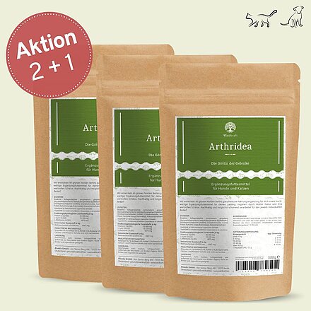 Set 2+1 Arthridea- Die Göttin der Gelenke Arthridea basiert auf einem bewährten Zutaten-Trio aus Chondroitinsulfat MSM und Glucosaminhydrochlorid welches wir bereits im Vorgänger Arthribasis verwenden. Arthridea ist eine Weiterentwicklung des beliebten Arthridonum H welches ihr bei uns auch als Arthribasis findet - natürlich ohne den im Arthridonum enthaltenen schwer verdaulichen Milchzucker. Arthridea ist zusätzlich mit neuen Naturkräften aus Kollagenpeptiden Grünlippmuscheln und ausgewählte...