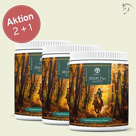 Set 2+1 MSM Pur Organischer Schwefel 1000g OptiMSM für Pferde Einzelfuttermittel für Pferde MSM Pur von Waldkraft ist organischer Schwefel gewonnen aus hochwertigen Premium-Rohstoffen. Schwefel ist an vielen essentiellen Prozessen im Organismus beteiligt. Es ist ein unverzichtbarer Bestandteil vieler körpereigener Stoffe wie verschiedener Enzyme Hormone und lebenswichtiger Aminosäuren. Schwefel ist wertvoll für Knochen Gelenke Muskeln Sehnen und Bänder Haut und Hufe Fell Fütterungsempfehlung ...